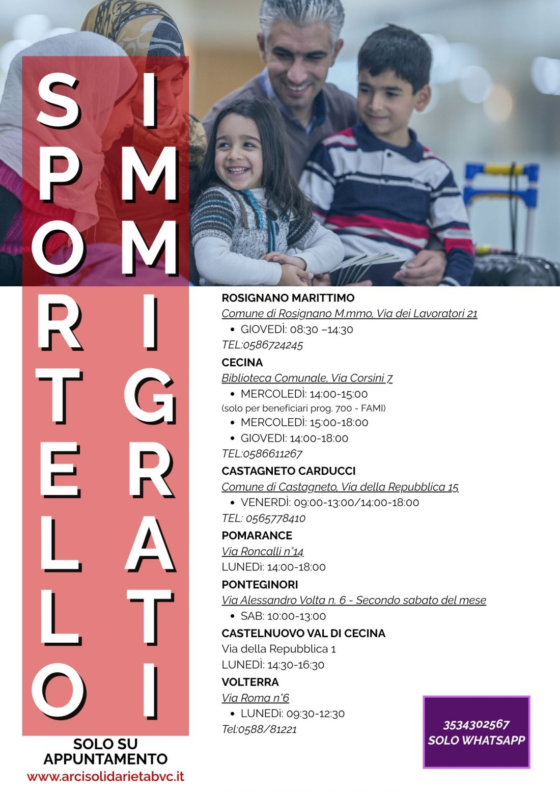 MERCOLEDÌ: 14:00-15:00 (solo per beneficiari prog. 700 - FAMI)MERCOLEDÌ: 15:00-18:00GIOVEDI: 14:00-18:00TEL:0586611267
